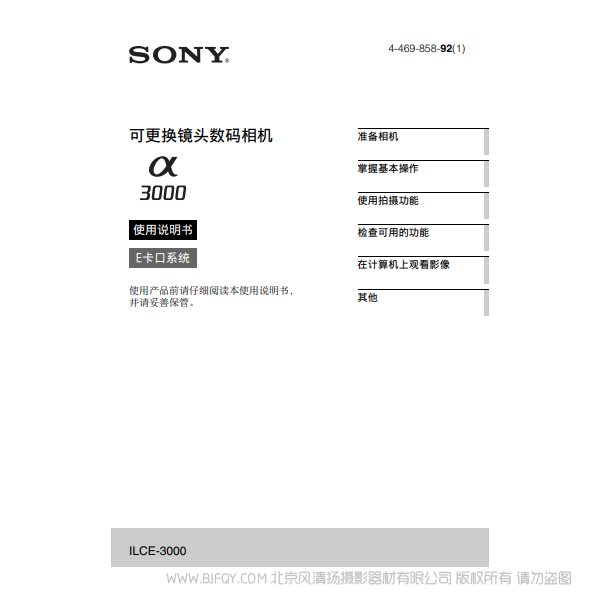 索尼 ILCE-3000K α3000 A3000 说明书下载 使用手册 pdf 免费 操作指南 如何使用 快速上手