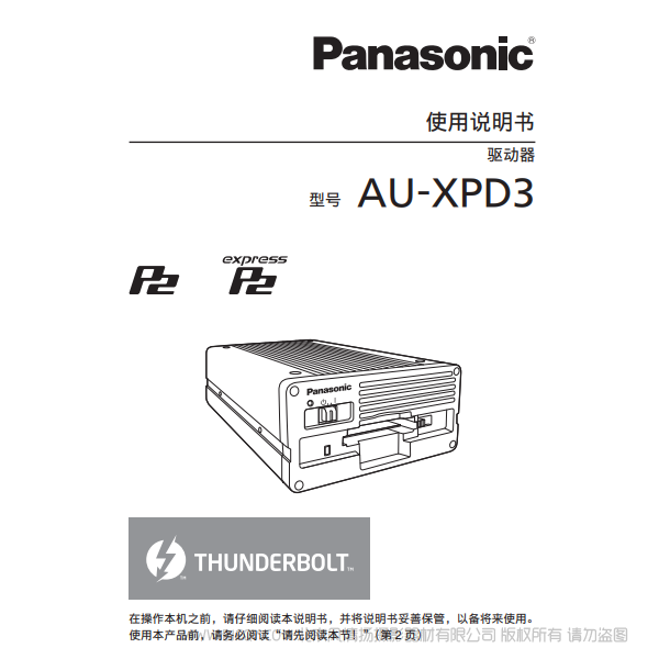 松下 Panasonic AU-XPD3MC 高速Thunderbolt?3接口的“expressP2驱动器” 读卡器 说明书下载 使用手册 pdf 免费 操作指南 如何使用 快速上手