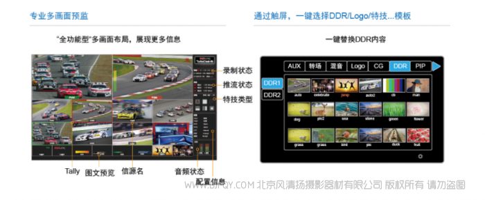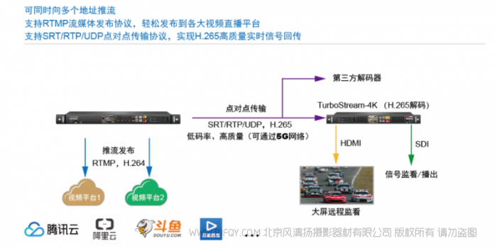 支持色域和HDR动态范围转换,让您放心监看、制作节目,产品自带多种格式编码器 XAVC、ProRes和H265、H264等,以完成现场节目的高质量录制和推流发布