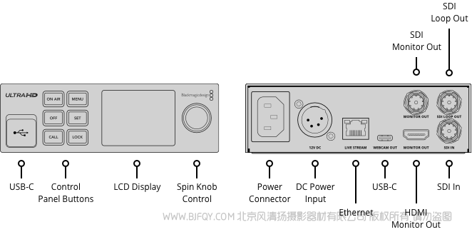 内置控制面板带2.2英寸彩色显示屏,用于视频预览、音频表和状态显示。