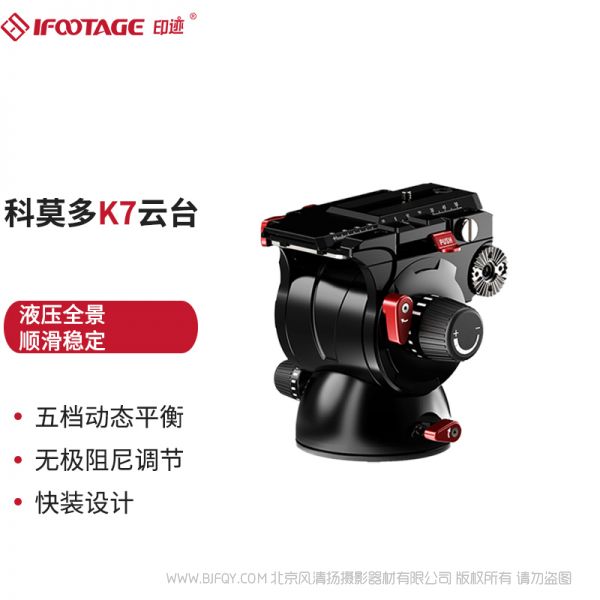印迹(iFootage)科莫多K7云台三脚架液压全景5档动态平衡无级阻尼调节承重7KG K7云台