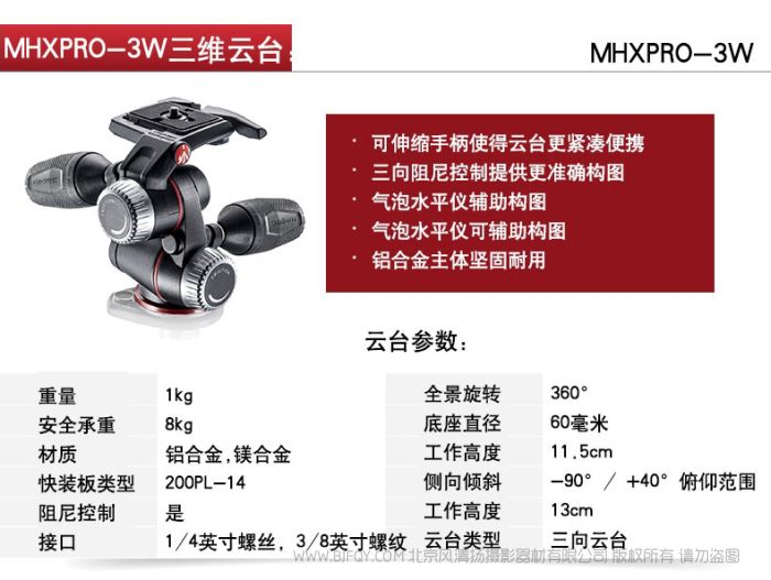 曼富图 MK190XPRO4-3W 190系列铝合金四节专业三脚架套装(云台:MHXPRO-3W)
