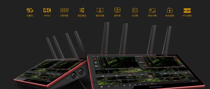 值得一提的是,NSCaster X2内置全网通5G模块和SIM卡槽,在缺乏有线宽带网络的场景下也可以通过5G网络开启直播。
