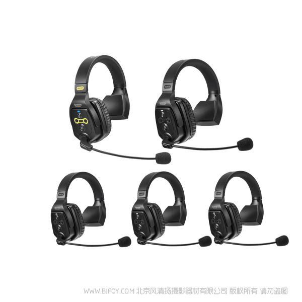 WiTalk WT5S是一款全双工无线对讲耳机系统,无线传输距离可达400米,轻松驾驭各种使用场景,满足您的多种使用需求。不同于传统的对讲机,头戴一体式无线通话系统的设计,使用时无需按钮操作,真正做到解放双手,想说就说,有效提升工作效率,是一款适用于电影拍摄、跑马场、赛车场以及其它各种赛事场景的专业级全双工无线对讲耳机系统。单耳主机WiTalk SMH可较多同时与四台从机连接使用,实现5人同时进行对讲通信。单耳从机WiTalk SRH可搭配任意一种主机配对使用。在一拖四(一个单耳主机配对四个从机)情况下可提供约5小时的续航时间。电池充电槽WiTalk CB一次较多可以同时给10个电池进行充电。