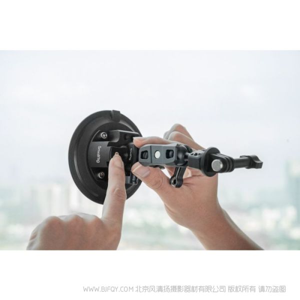 SmallRig 4” 车载吸盘支撑套件4236,由4”吸盘、魔术手、防尘盖三部分组成。吸盘主体采用丁腈橡胶材质,坚固耐磨,适应高低温(-20~60℃),不易变形,密封性好,耐磨性高,可用于光洁、干燥、平整的表面。吸盘吸附力强,配合魔术手使用,建议承重3kg及以下。吸盘拓展座铝合金材质,接口丰富,有多个1/4”-20螺纹孔、3/8”-16螺纹孔、阿莱定位孔,可搭配3757,3873,3874,2906B,2070B,2115C等支架,拓展丰富配件;吸盘为手动泵锁紧方式,带有警示线,安全可靠;吸盘配备防尘盖,防止吸盘不适用情况下沾灰,延长使用寿命。魔术手和吸盘连接部分为滑槽连接,可一键拆装设备,提高拍摄效率;另一端和设备连接,比如部分轻量相机Sony ZV-E10、Canon EOS M50,或者搭配3084B、4119安装GoPro11/10/9、DJI Action 3等设备,实现车载拍摄或者室内延时摄影等。