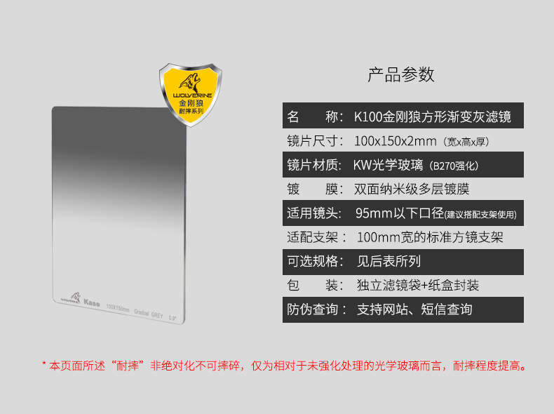 Kase卡色 方形渐变镜 100mm 金刚狼耐摔镜GND中灰渐变镜 插片滤镜