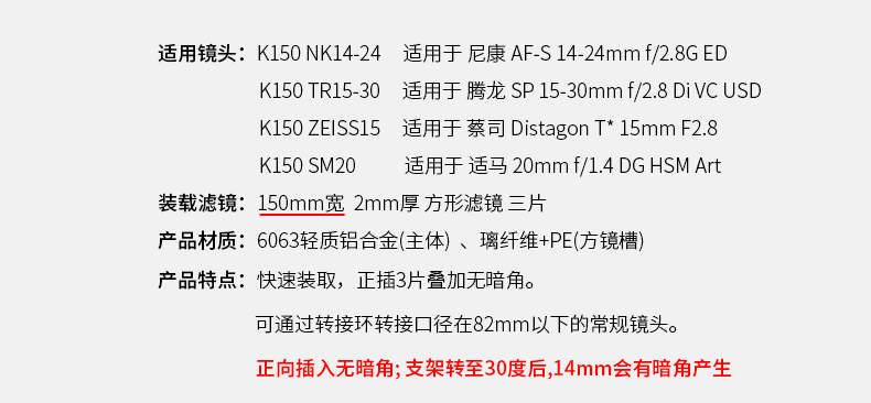 Kase卡色 150mm方形滤镜支架 适用于尼康14-24腾龙15-30蔡司15适马20镜头 方镜支架 滤镜架 方镜架 插片滤镜