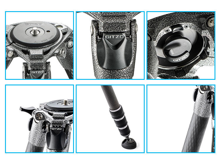 坚固的顶部铸件 Easy Link接口 脚管角度选择器 G-lock Ultra旋钮 Carbon eXact碳纤维脚管材料 大脚板 稳定挂钩