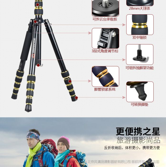 沃尔夫冈 wolfgang JZ-606+YT02 铝合金 三脚架 适用于 索尼 佳能摄像机 等产品 单反相机 专微