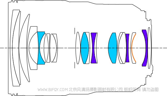 RF24-70mm F2.8 L IS USM充分发挥了RF卡口大口径和短后对焦距离的优势,实现了全焦段的高画质。镜头采用15组21片的光学设计,包括3片GMo(玻璃模铸)非球面镜片和3片UD镜片,可良好补偿球面像差、色像差等,从画面中心到边缘都能得到高画质。另外,还采用了ASC镀膜,可有效抑制眩光和鬼影。