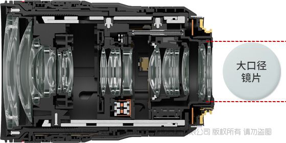 发挥RF卡口的优势,利用大口径卡口和短后对焦距离的特点,在成像面附近配置大口径镜片,由此减少光线折射、降低像差,在实现专业级高画质的同时,兼顾了变焦镜头的小型化。