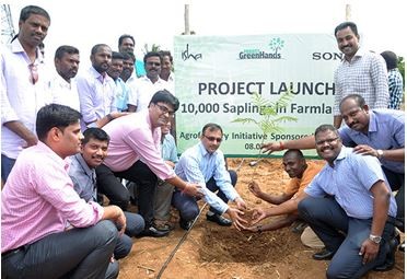 索尼印度公司与艾萨(Isha,非盈利性公共服务组织)合作共同推进绿色之手项目(Project Green Hands, PGH),即在泰米尔纳德邦(Tamil Nadu)地区种植10000棵树,以实现该项目中的“生命之树”计划。通过合作,将PGH项目培育出的用来生产水果、木材和草料的树苗分发给农民,由其在自家田地里栽植,并在两年时间内,对这些树木的成长情况进行密切监察。