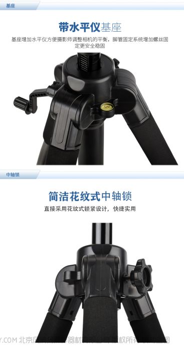 高度168CM , 云台可拆卸,配3/8转换螺丝,带指南针,