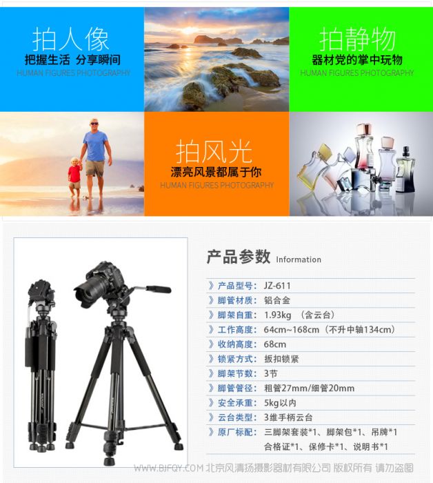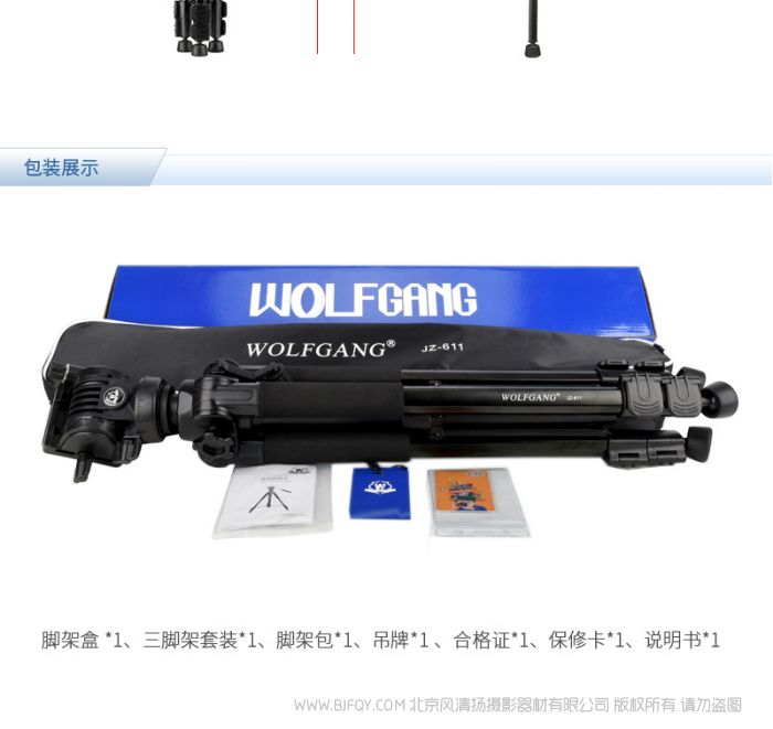 原厂标配 | 三脚架套装1 脚架包1 吊牌1 合格证1 保修卡1 说明书1 |