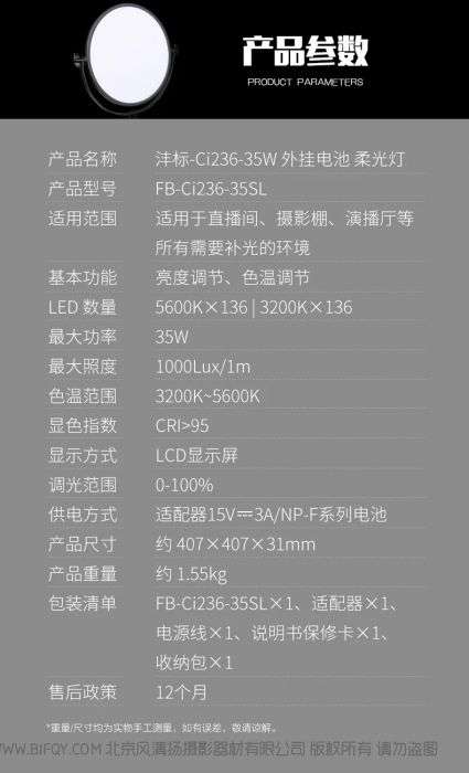 产品名称 | 沣标 Ci236-35W 外挂电池 柔光灯 |