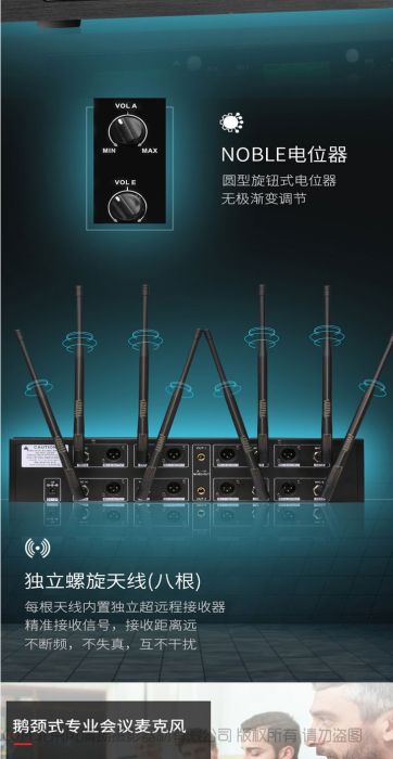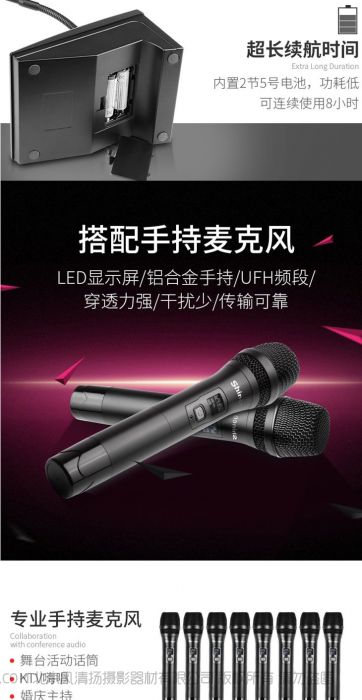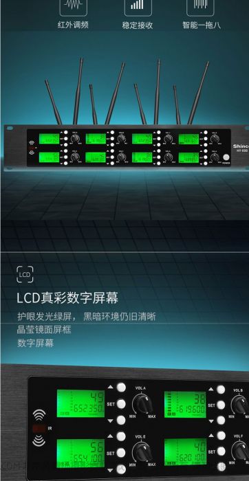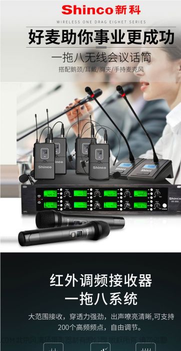 新科(Shinco) HY-008一拖八U段无线手持话筒耳麦领夹麦鹅颈麦会议演出活动KTV唱歌麦克风 接收器+8个U段无线手持话筒