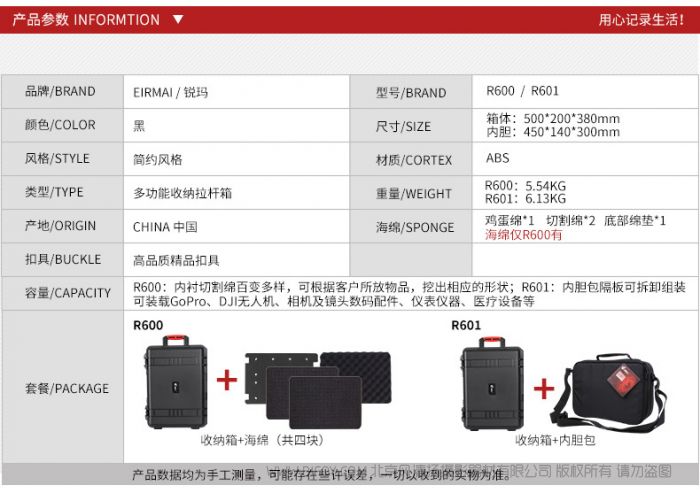 锐玛 Eirmai R601 R600 拉杆防撞 硬壳箱 拉杆箱 安全收纳 摄影器材 拉杆包