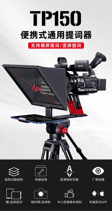 百视悦 TP150提词器 斜拉式升降云台 单反相机可调节横拍竖拍