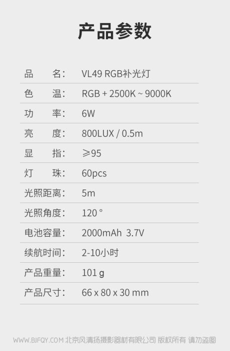 品名 | VL49 RGB补光灯 |