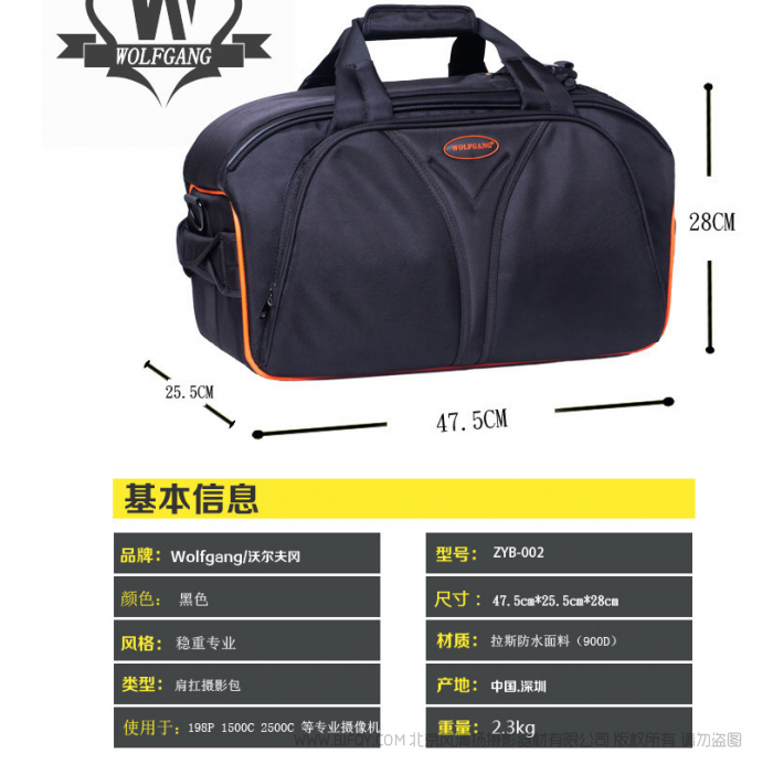沃尔夫冈 ZYB-002 索尼 198P 1500C 2500C 松下 MDH2 MDH1 专用DV 摄像 包