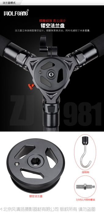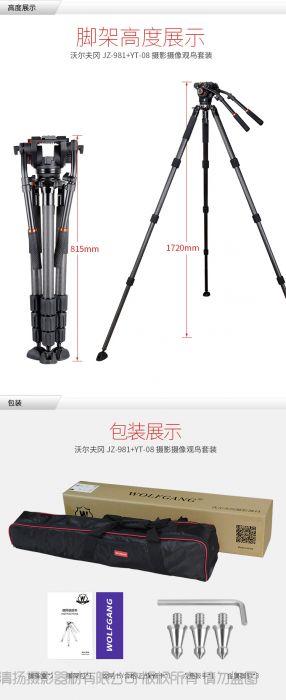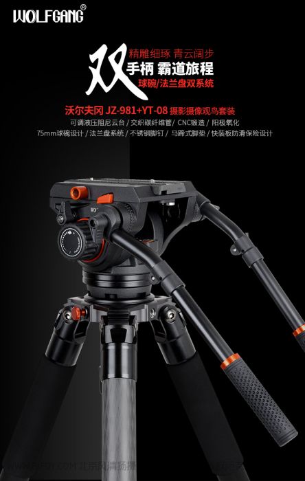 沃尔夫冈 JZ-981+YT06 碳纤维 专业摄像机 三脚架 支持型号 松下 MDH3 3100MC FC100MC PX298MC