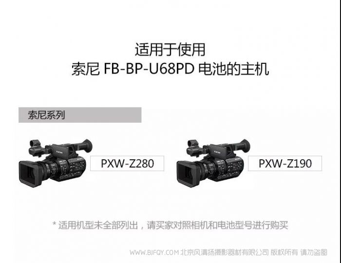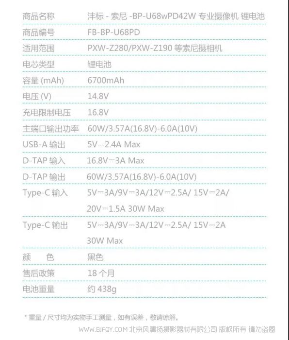 新品:适配索尼 FB-BP-U68PD 沣标广播级摄像机锂离子电池 Z280 Z190