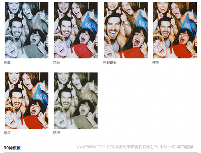 享受相机中10个预先安装的图像模板,以及应用程序中的30个特色模板。