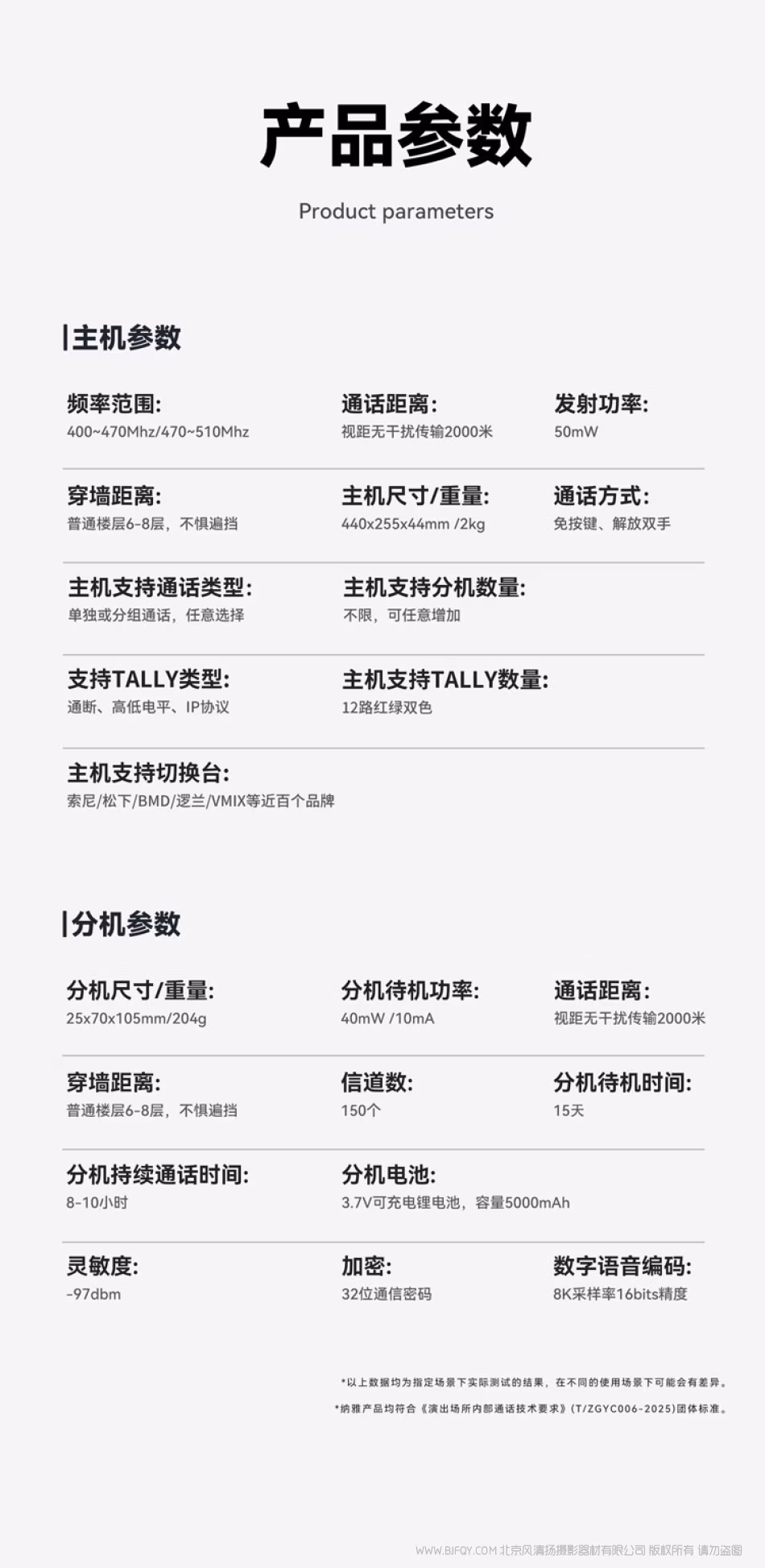IP tally接口 两线 四线有线通话 分机数量无线添加 分组功能 背景声抑制 脱网直通