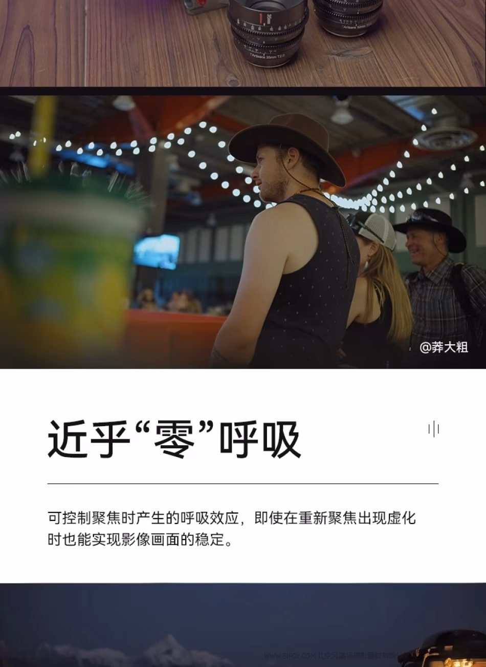 近乎“零”呼吸 在镜组的设计过程中,在保证镜头体积、重量、画质成像等多方面因素的同时,极大的优化了呼吸效应