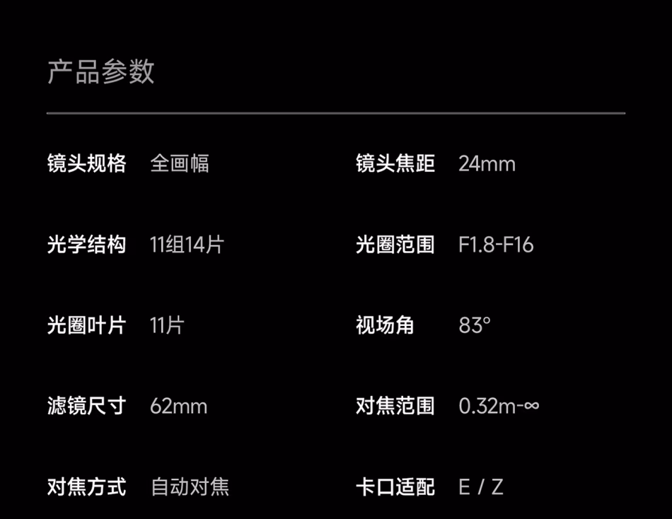 BrightnStar 星曜 星耀 AF 24mm F1.8 全画幅 自动对焦镜头 E卡口 Z卡口