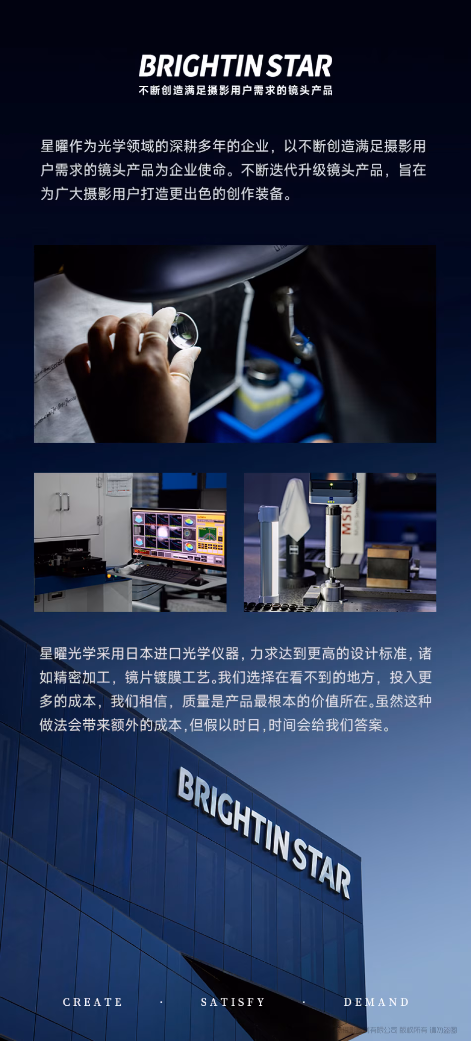11组15片光学模组,包含2枚ASPH非球面镜片、2枚高折射镜片、2枚ED低色散镜片实现卓越的光学性能。无论是拍摄城市建筑还是星空银河,都能提供中心到边缘的卓越的高分辨率,纤毫毕现