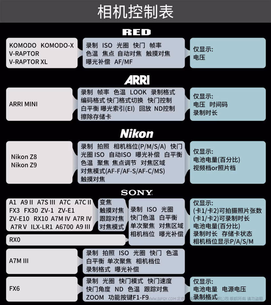| 电池 | Sony NP-F970/F960/F750/F550 |