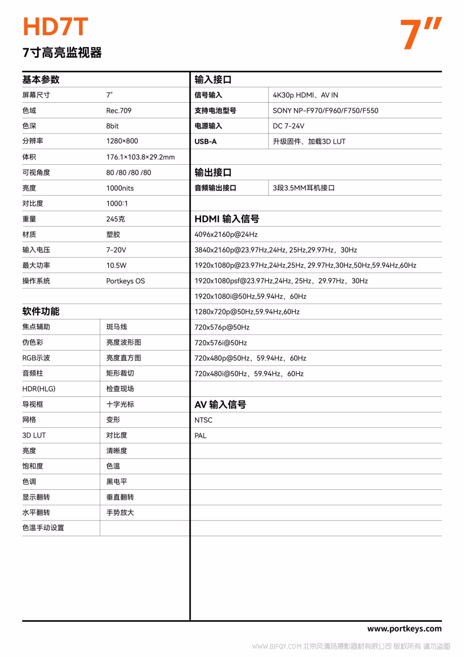 | 软件功能 | 焦点辅助、斑马线、伪色彩、亮度波形图、RGB示波 亮度直方图、音频柱、矩形裁切、HDR(HLG)、检查 现场、导视框、十字光标、网格、变形、3D LUT、对比度 亮度、清晰度、饱和度、色温、色调、黑电平、显示翻转 垂直翻转、水平翻转、手势放大、色温手动设置 |
