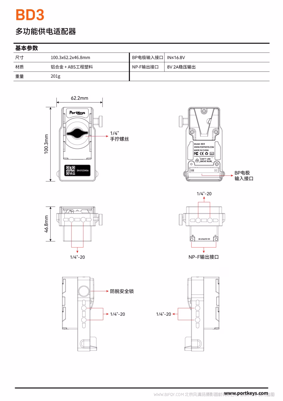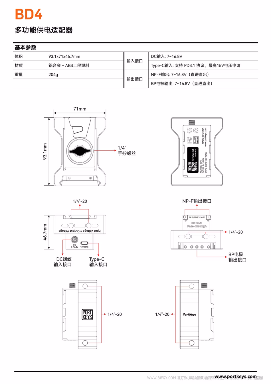 PortKeys 门钥匙 艾肯 BD3 BD4 多功能供电适配器 BD3 V口电池转NPF供电模块 BD4 NPF电池转V口供电模块