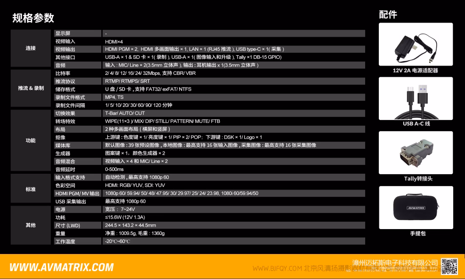 迈拓斯 AVMATRIX 黑蜂2号PRO丨4通道HDMI切换台