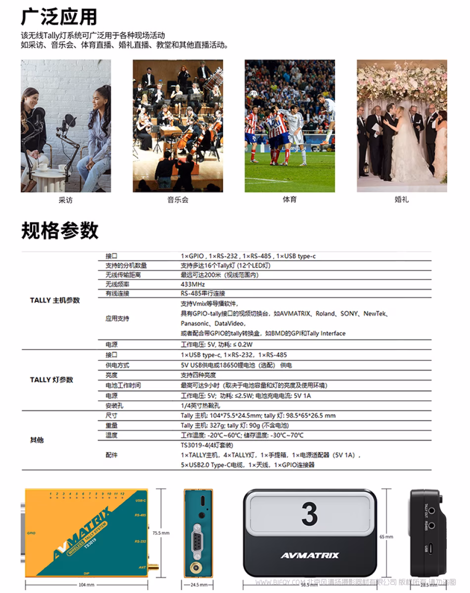 *支持无线/有线tally连接