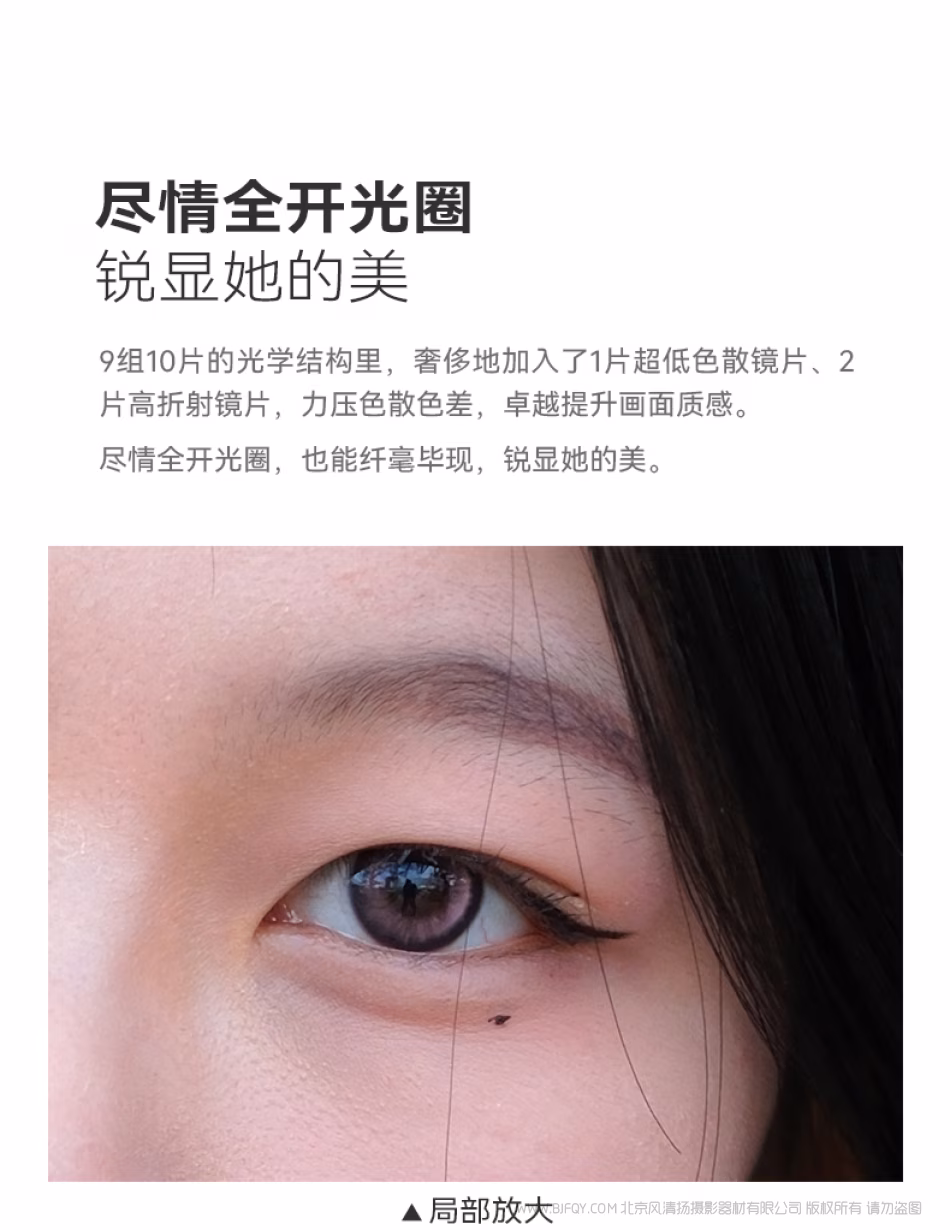 9组10片的光学结构里,奢侈地加入了1片超低色散镜片、2片高折射镜片,力压色散色差,卓越提升画面质感。尽情全开光圈,也能纤毫毕现,锐显她的美。