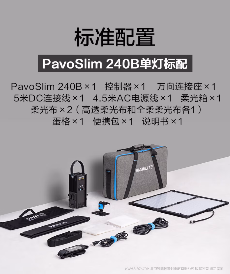 装配灯具的便携包采用Nanlite家族经典设计语言。
