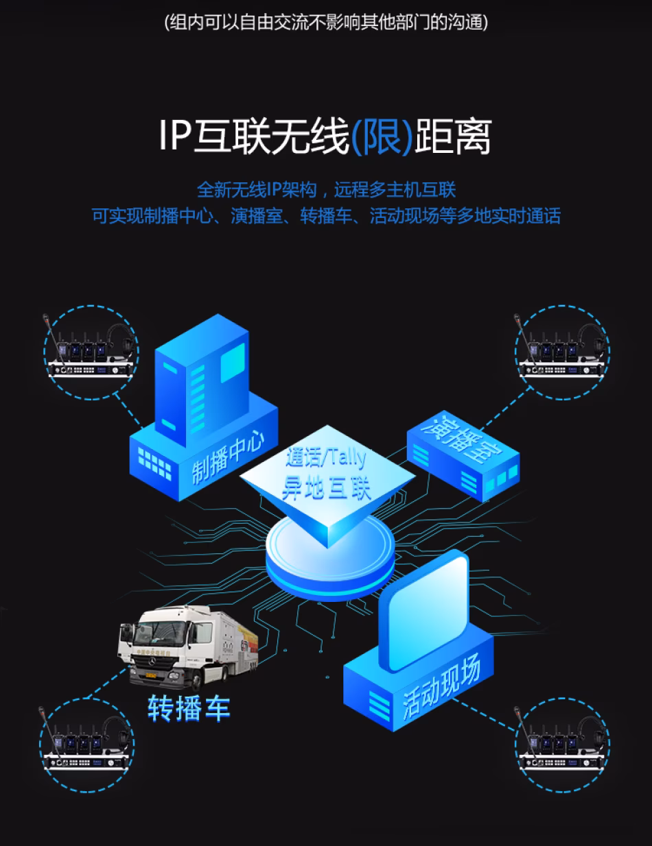 可实现制播中心、演播室、转播车、活动现场等多地实时通话