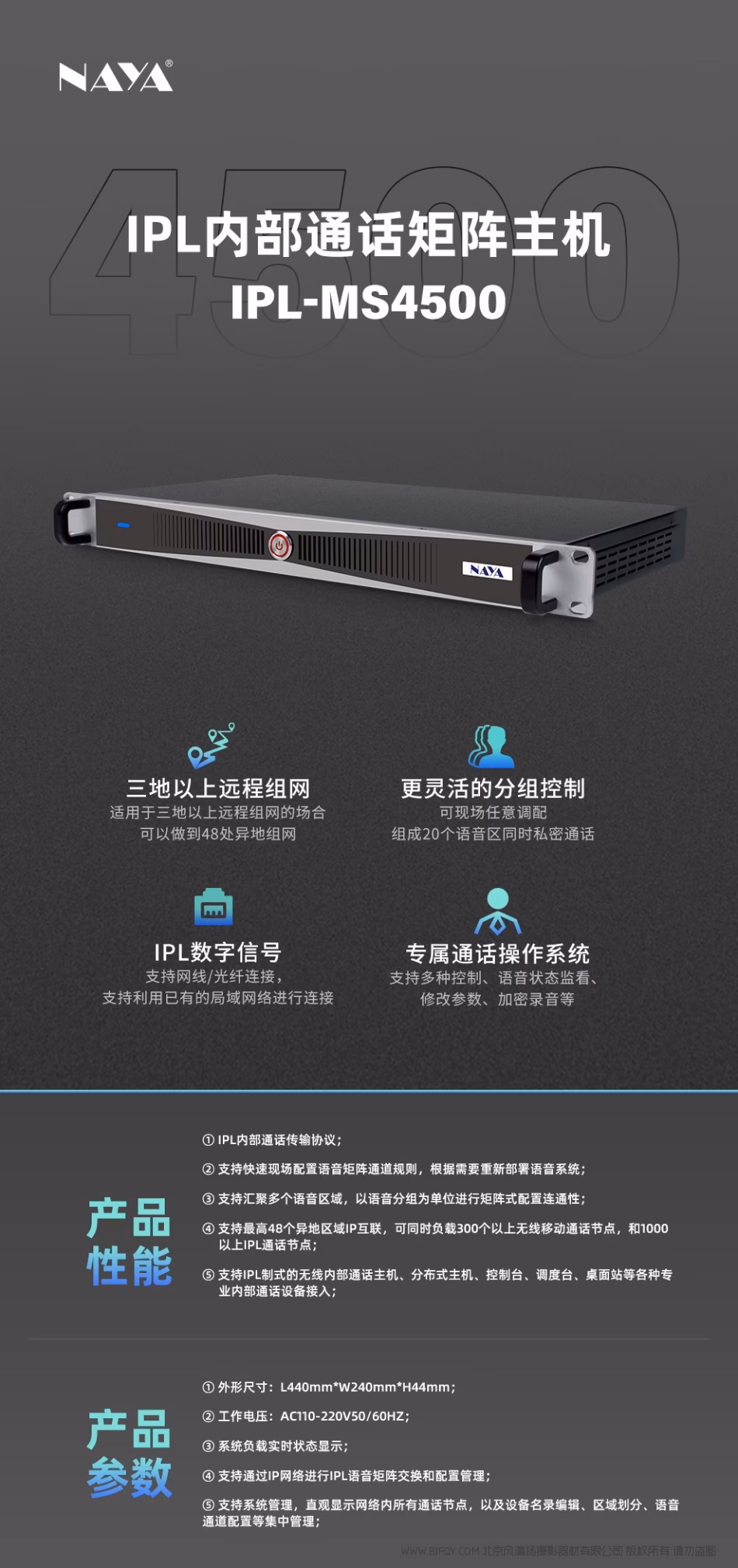 ④支持通过IP网络进行IPL语音矩阵交换和配置管理;