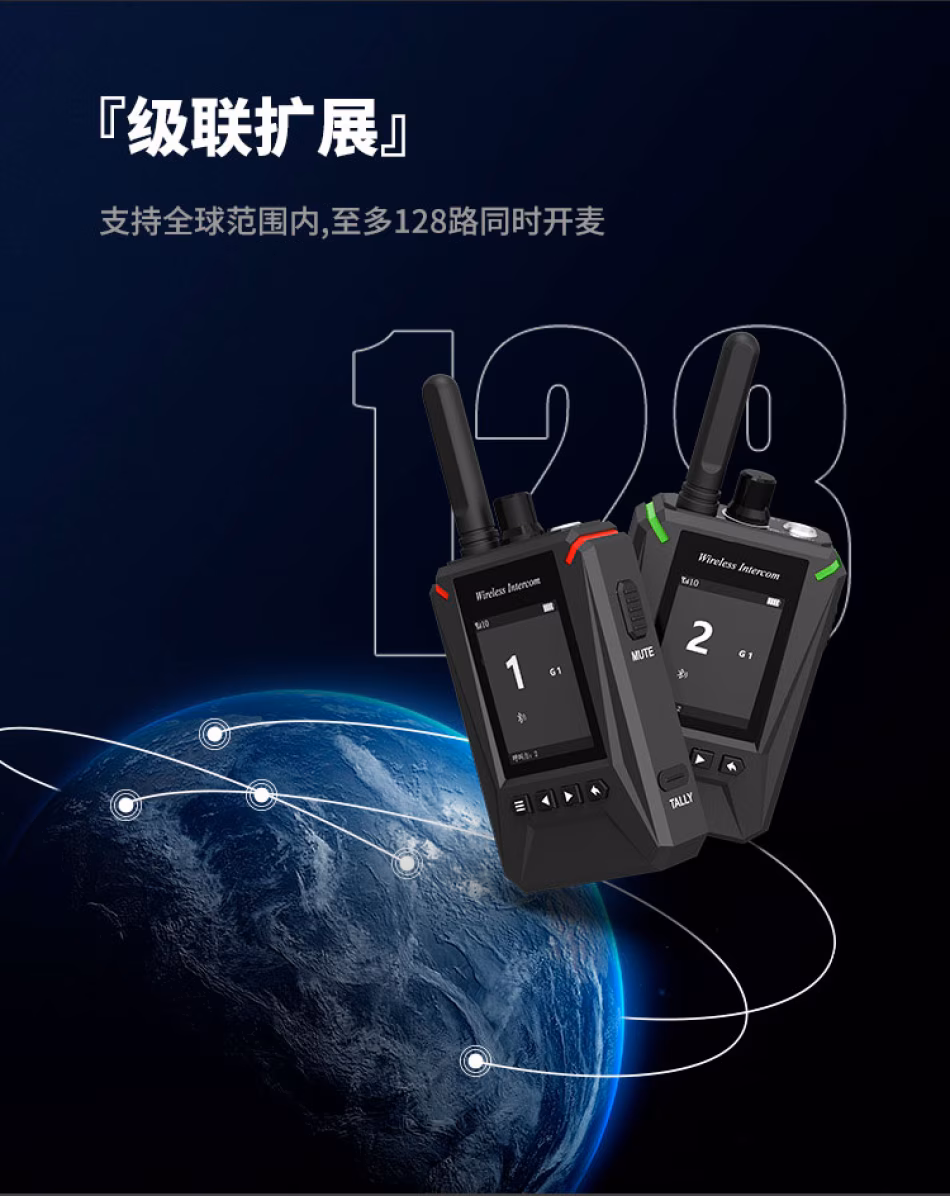 LCD显示屏,方便设定频道、背景声抑制、机身编号、组号、场景声等级设置;