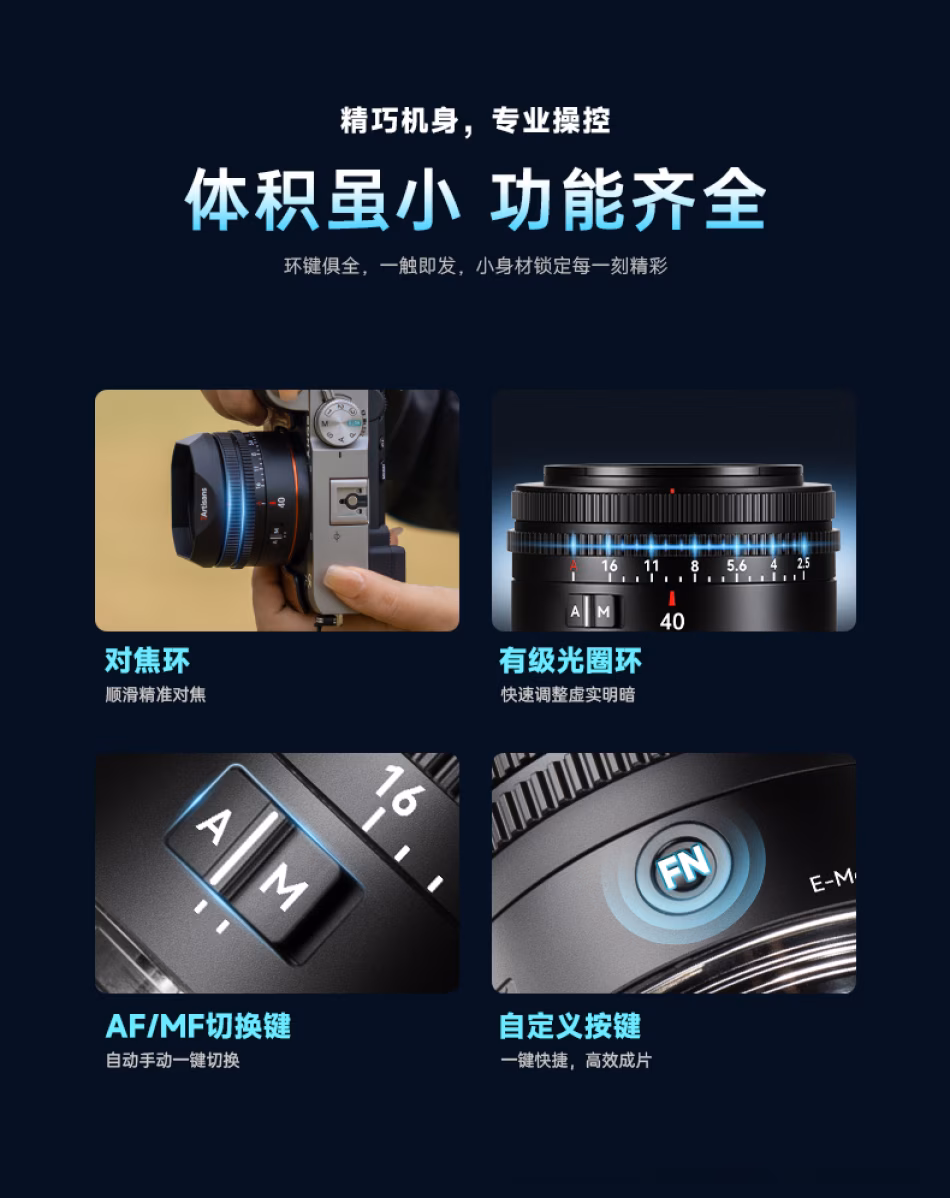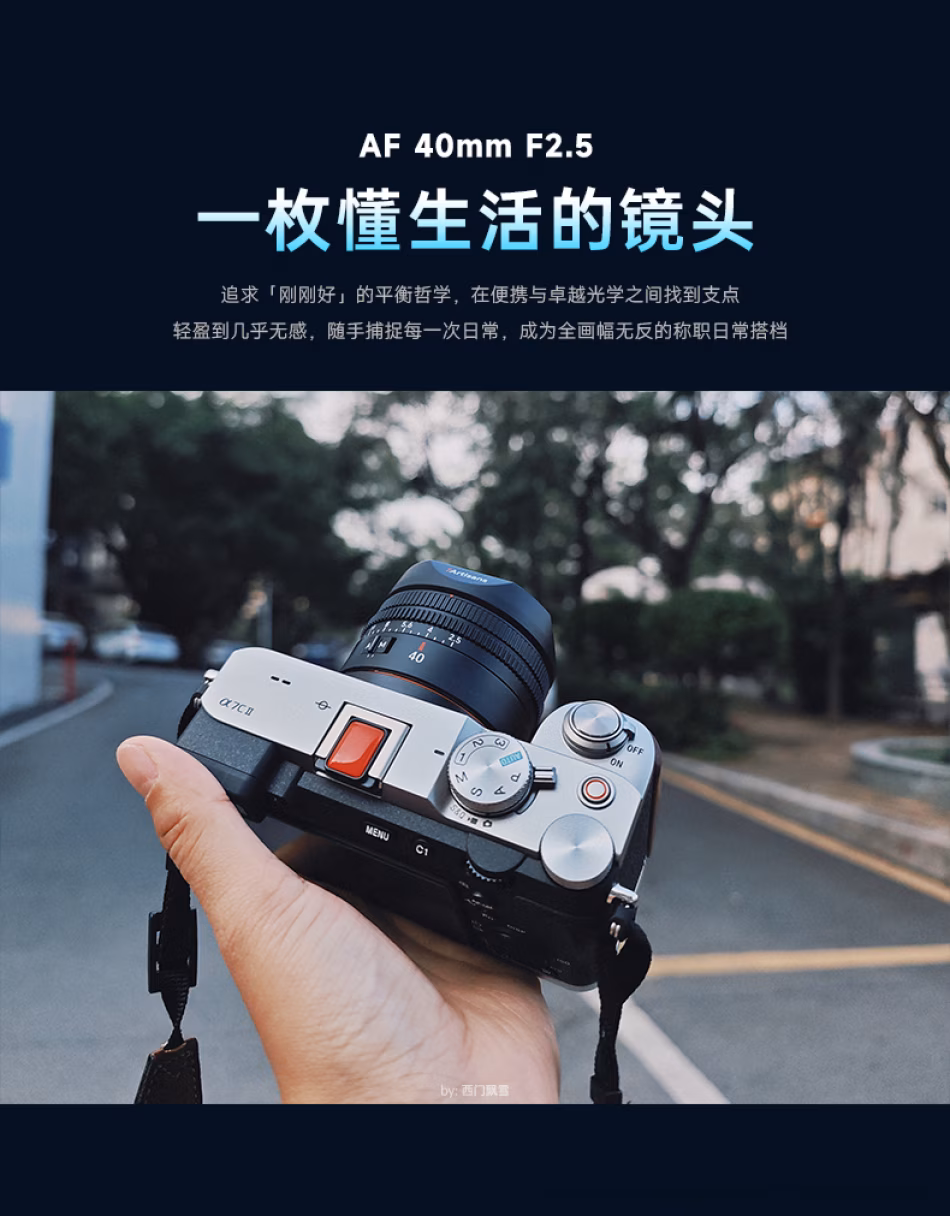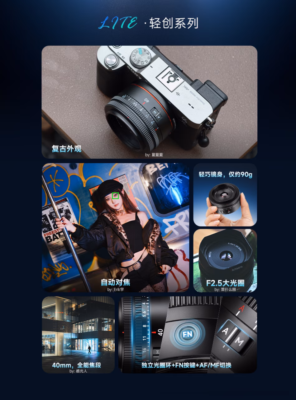 仅重90g,轻若无物。这款全画幅自动镜头,以经典40mm人文视角,轻松捕捉日常诗意与街头活力。F2.5大光圈,带来柔和迷人的虚化,让焦点主体脱颖而出;自动对焦迅速宁静,助你瞬间定格心动画面。无论是随身挂机扫街,还是记录生活点滴,它都是你背包里轻若无物的创作伙伴。以极简重量,承载创作重量