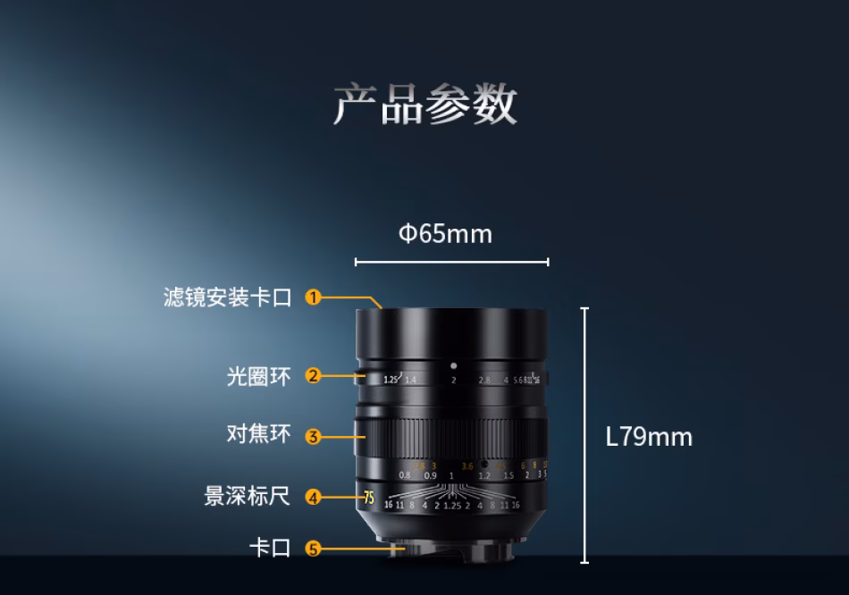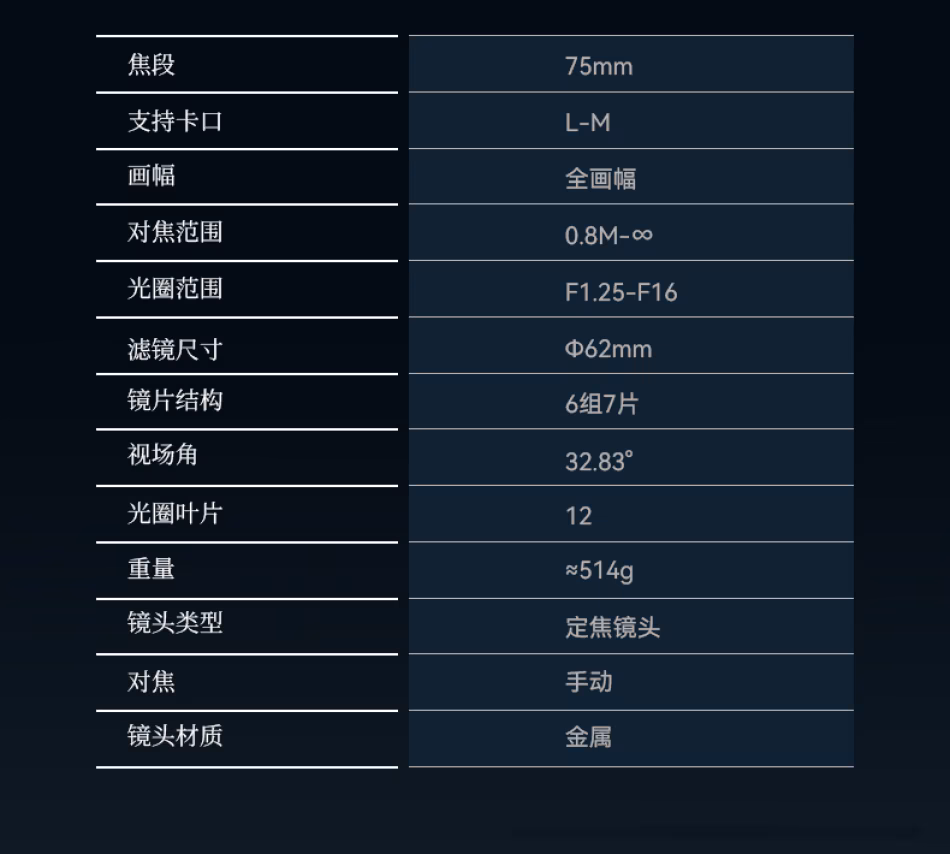 七工匠 M75mm F1.25II 徕卡M口 全画幅 手动对焦 夜光刻度 F1.25超大光圈·浅景深人像风 二代轻巧·长时间拍摄无压力