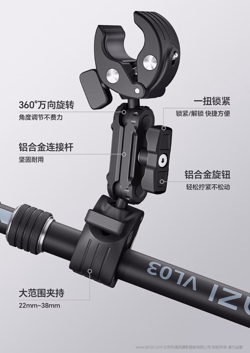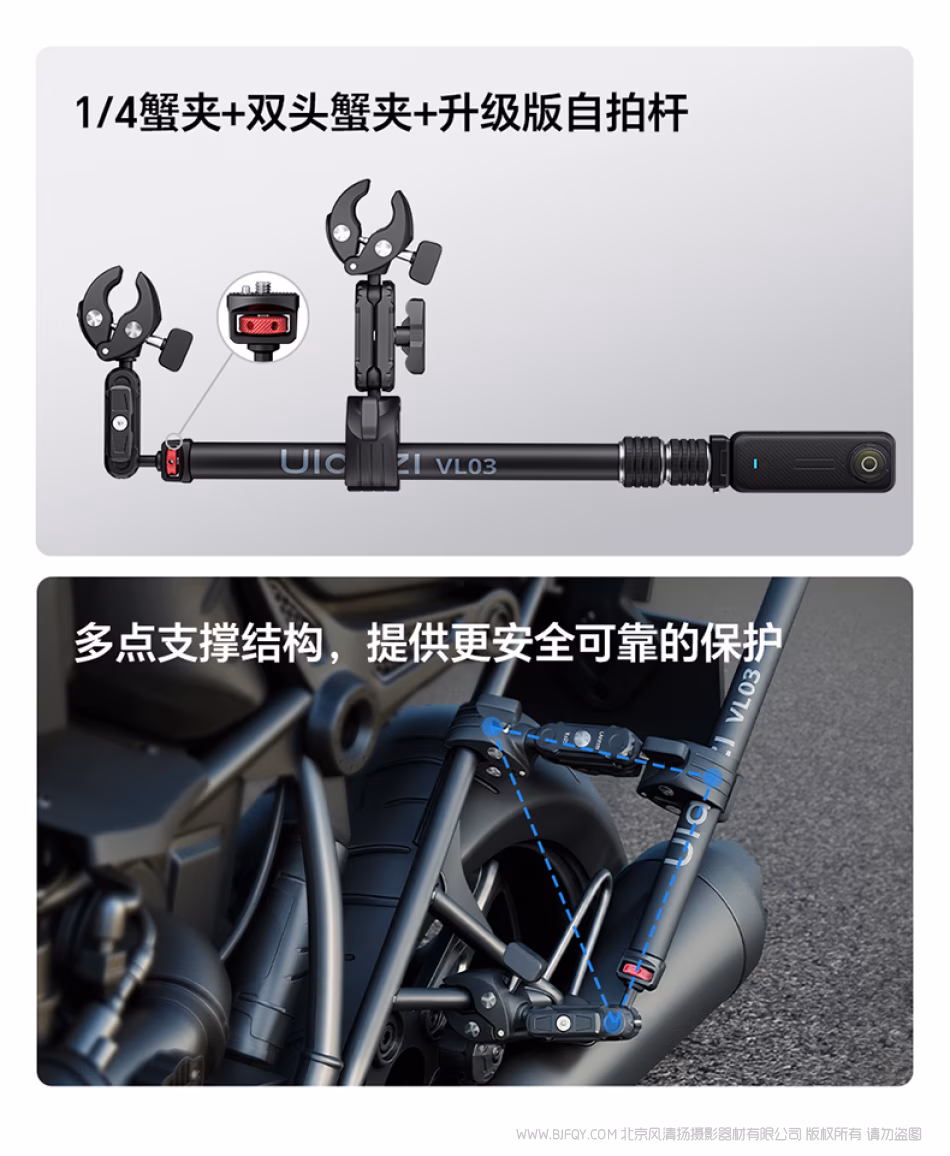 优篮子 Ulanzi VL03 摩托车隐形自拍杆支架 自由骑行 稳拍随行
