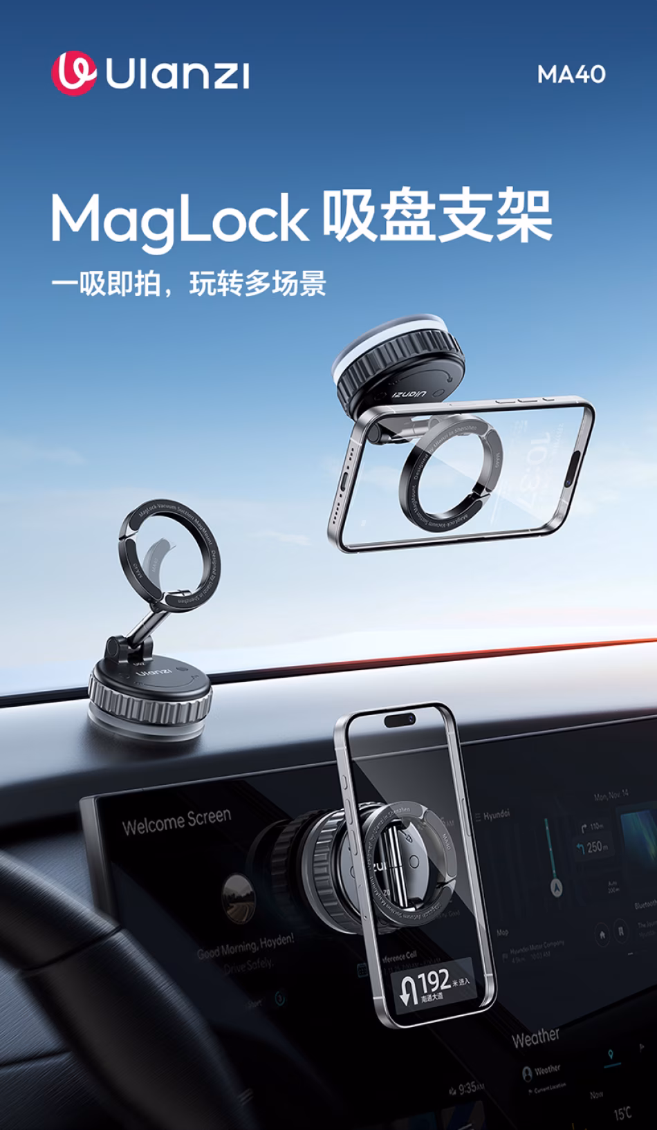 优篮子 Ulanzi MA40 Maglock吸盘支架 S011 一吸即拍,玩转多场景
