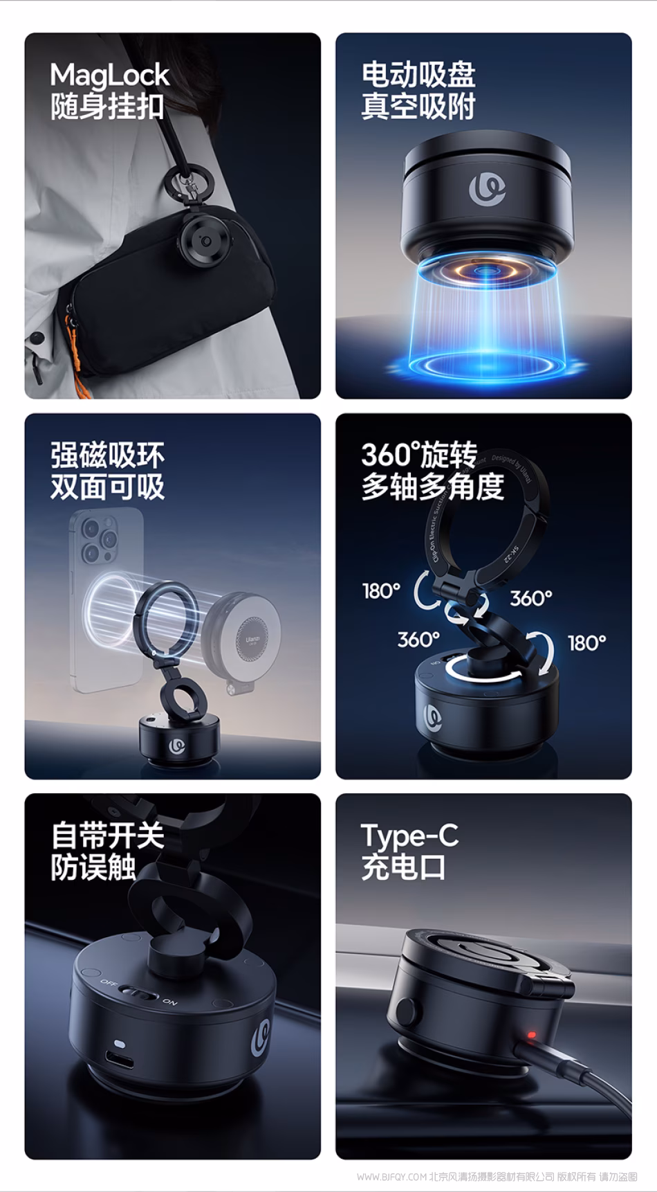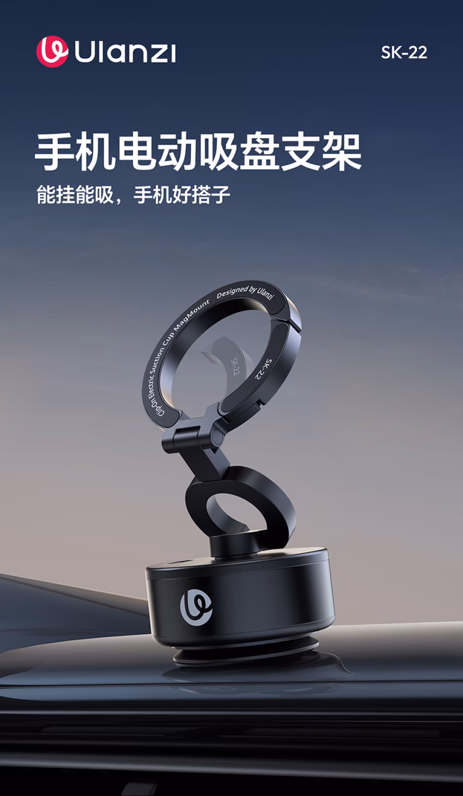 优篮子 Ulanzi SK-22 手机电动吸盘支架 M096A 能挂能吸,手机好搭子