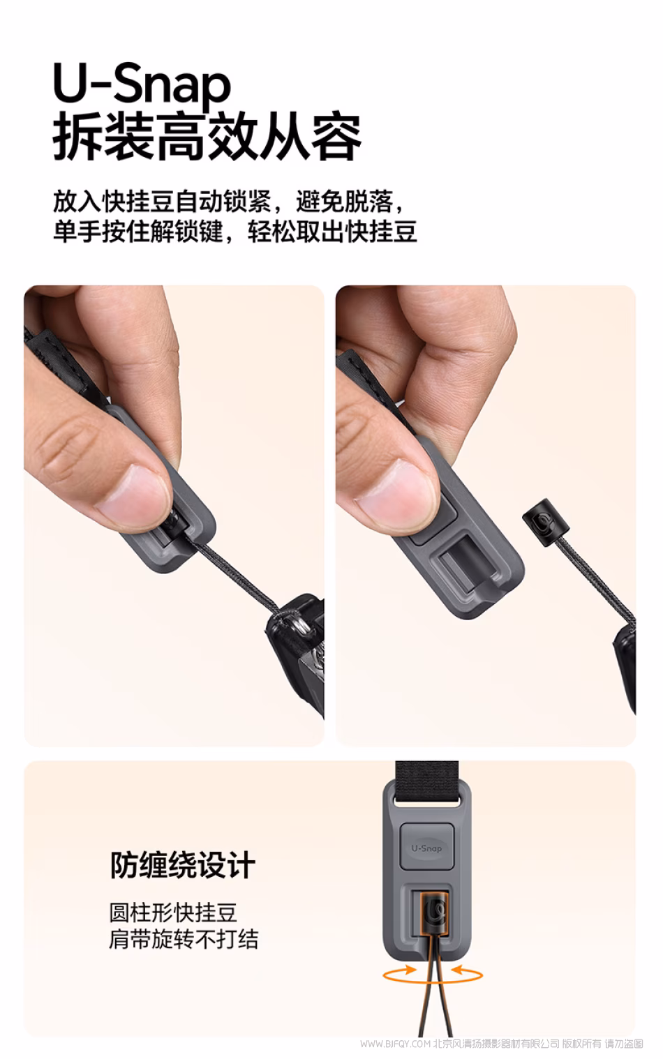 优篮子 Ulanzi CSS2 U-Snap相机肩带Lite -暗影黑B198 雾凇绿B199 星渊蓝B200 暮光橙B201