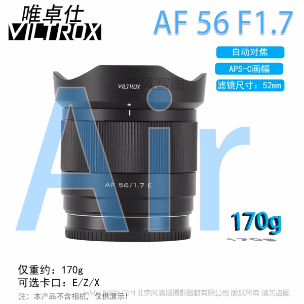 唯卓仕 Viltrox AF 56mm F1.7 Air E/Z/X APSC半画幅 大光圈超广角 定焦镜头 VL-AFC5617