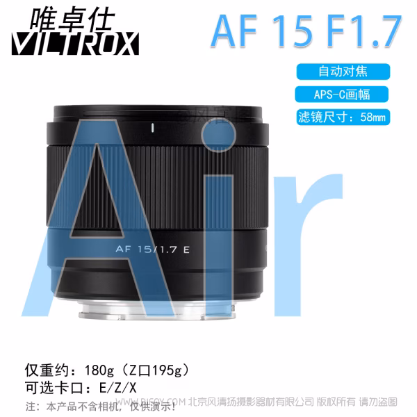 唯卓仕 Viltrox AF 15mm F1.7 Air E/Z/X APSC半画幅 大光圈广角 定焦镜头 VL-AFC1517