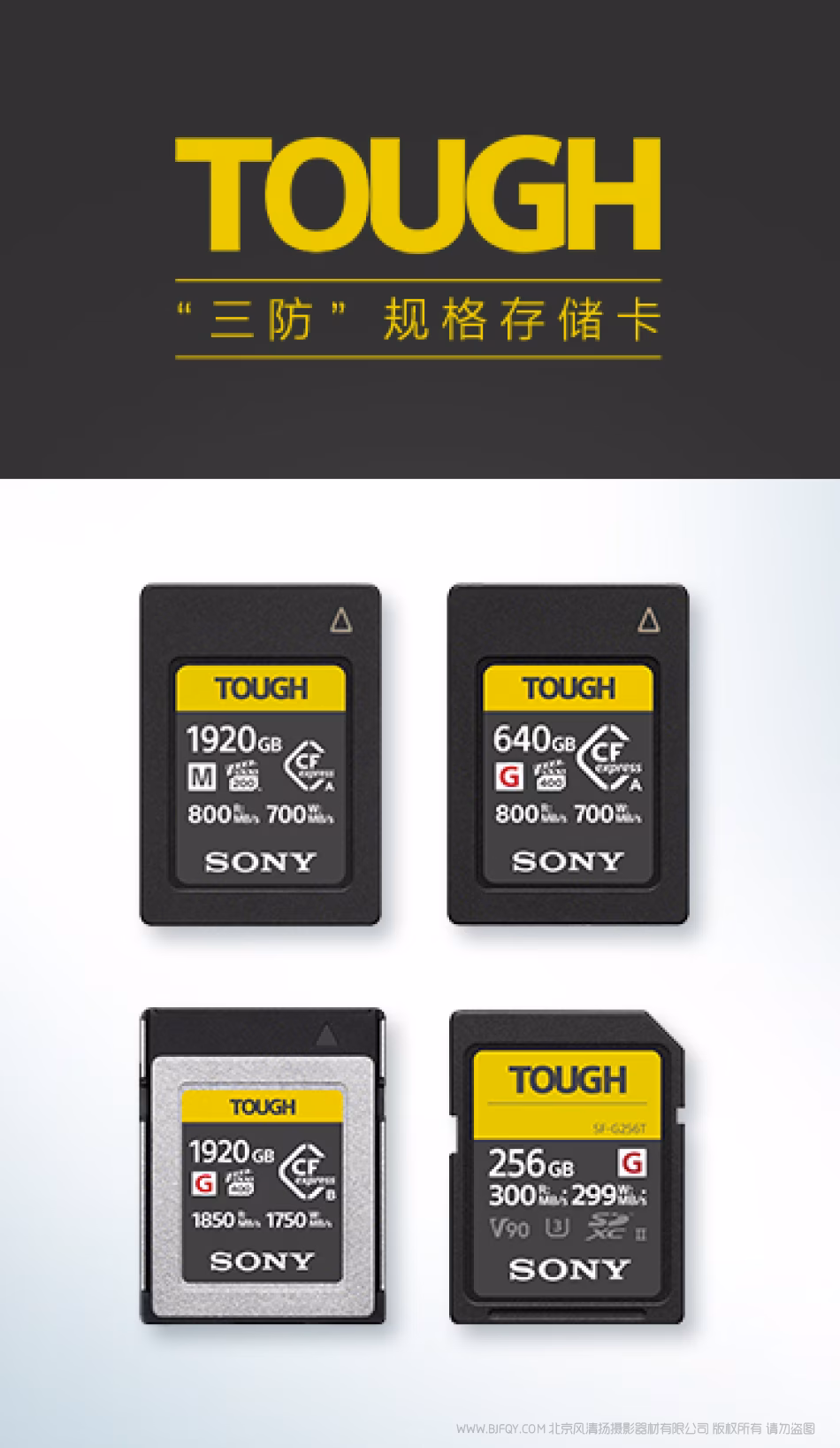 不要让存储设备限制了您的创作边界!选择索尼TOUGH三防规格储存卡,让每一次按下快门都充满信心,让每一帧画面都得到完美保存。